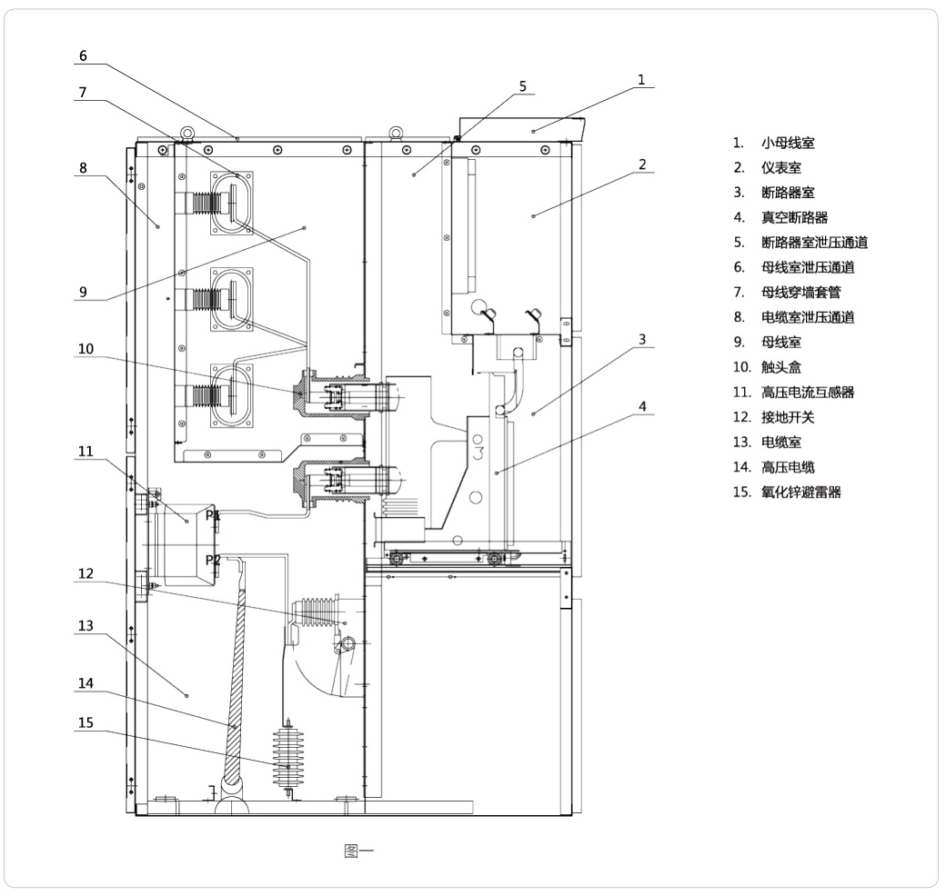 開關(guān)設(shè)備按GB/T3906-2020中的鎧裝金屬封閉開關(guān)設(shè)備的設(shè)計。圖一:開關(guān)柜由固定的柜體和可抽出部件(簡稱手車)兩大部分組成,柜體的外殼和各功能單元的隔板均采用螺栓聯(lián)接。開關(guān)柜外殼防護等級是IP4X,斷路器室門打開時的防護等級為IP2X。開關(guān)柜可配用真空斷路器手車,也可配用固定式負(fù)荷開關(guān)。具有架空進(出)線、電纜出線及其它功能方案。開關(guān)柜可安裝成雙重柜排列,即安裝成背靠背或面對面雙排排列。