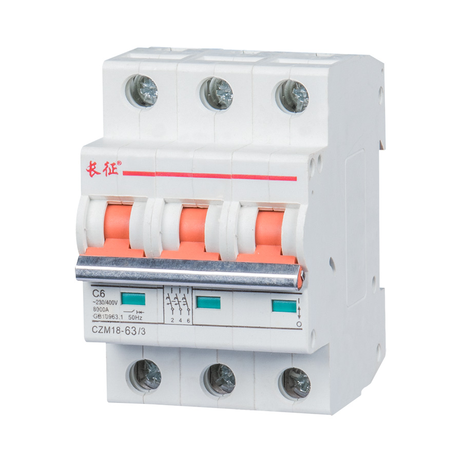 CZM18系列小型斷路器適用于交流50Hz,額定電壓230V/400V,額定電流至63A線路中。主要用于辦公樓、住宅及類似的建筑物的照明、配電線路及設備的過載、短路保護,同時也可以在正常情況下作為線路的不頻繁轉換之用。 該斷路器具有外形美觀、結構先進、性能可靠、分斷能力高(10kA)、飛弧短等特點;是工業(yè)、商業(yè)、高層和民用住宅等客戶理想的產品。產品型號說明