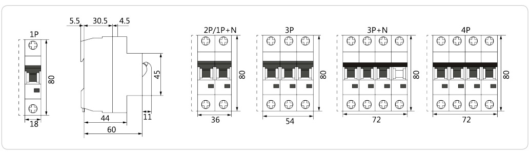極數:單極、1P+N、雙極、三極、3P+N、四極