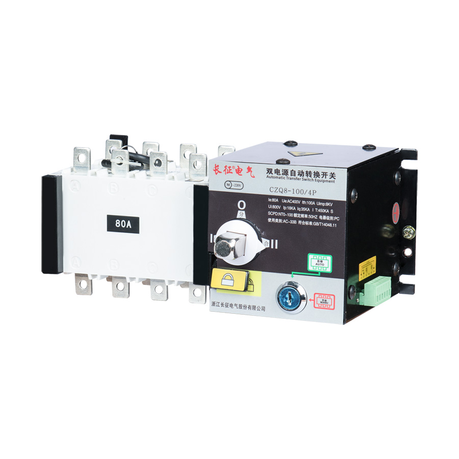 CZQ8系列雙電源自動(dòng)轉(zhuǎn)換開關(guān),是集開關(guān)與邏輯控制于一體,真正實(shí)現(xiàn)機(jī)電一體化的自動(dòng)轉(zhuǎn)換開關(guān),具有電壓檢測、頻率檢測、通訊接口、電氣、機(jī)械互鎖等功能,可實(shí)現(xiàn)自動(dòng)、電動(dòng)遠(yuǎn)程、緊急手動(dòng)控制。 操作是由邏輯控制板以各種邏輯命令來管理電機(jī)、變速箱的操作運(yùn)行來實(shí)現(xiàn),電機(jī)帶動(dòng)開關(guān)彈簧蓄能,瞬時(shí)釋放的加速機(jī)構(gòu),快速接通分?jǐn)嚯娐坊蜻M(jìn)行電路轉(zhuǎn)換,通過明顯可見狀態(tài)實(shí)現(xiàn)安全隔離,極大的提高了各項(xiàng)電器性能與機(jī)械性能。產(chǎn)品型號(hào)說明