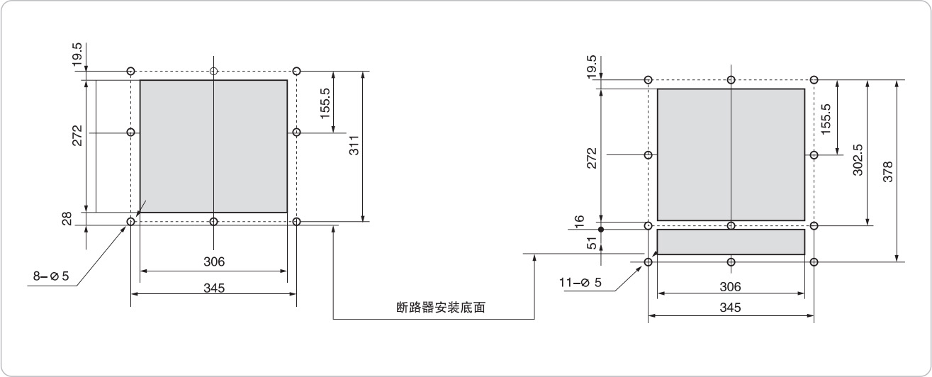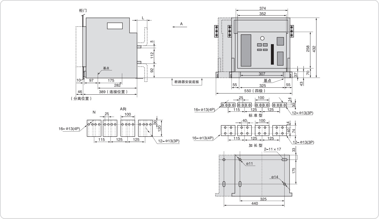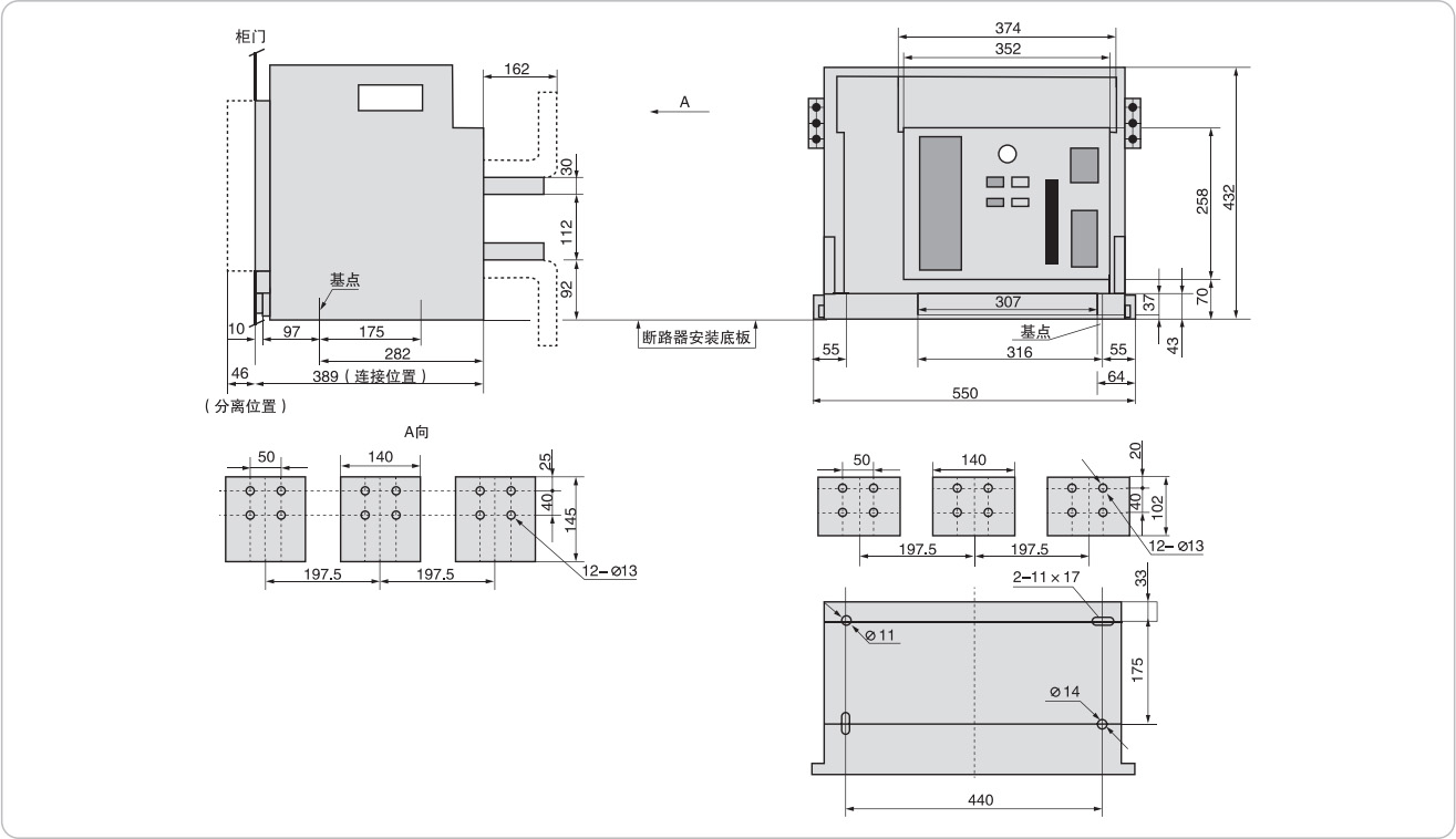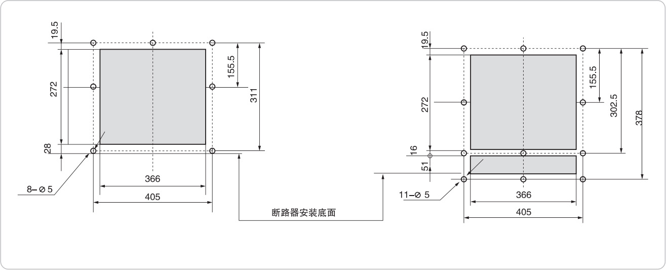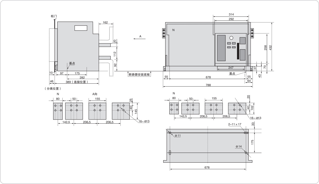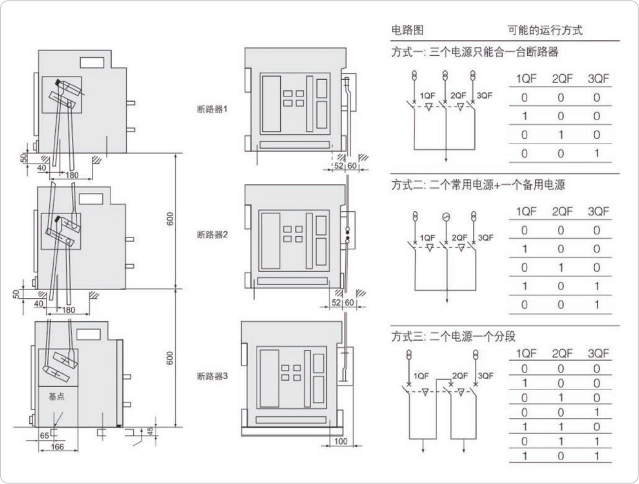 (聯(lián)桿聯(lián)鎖的底板開孔尺寸參見三臺斷路器的開孔尺寸)