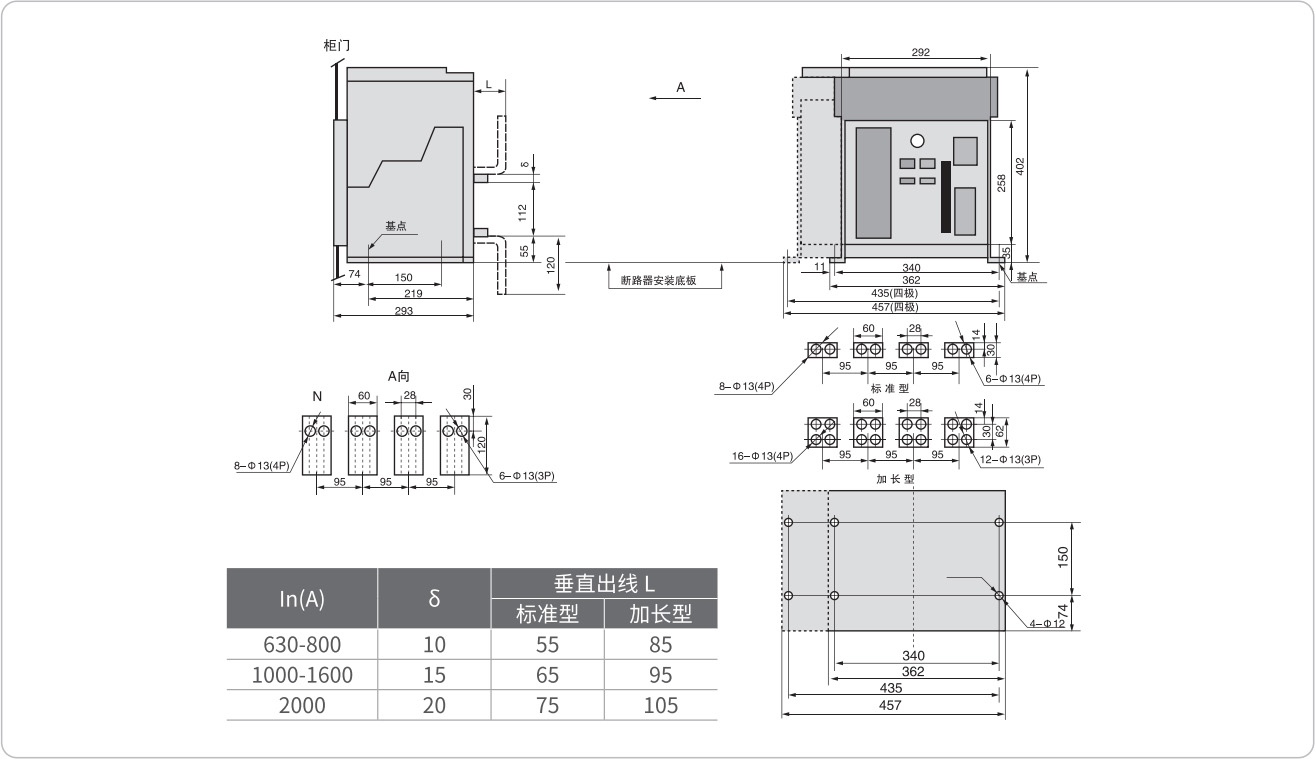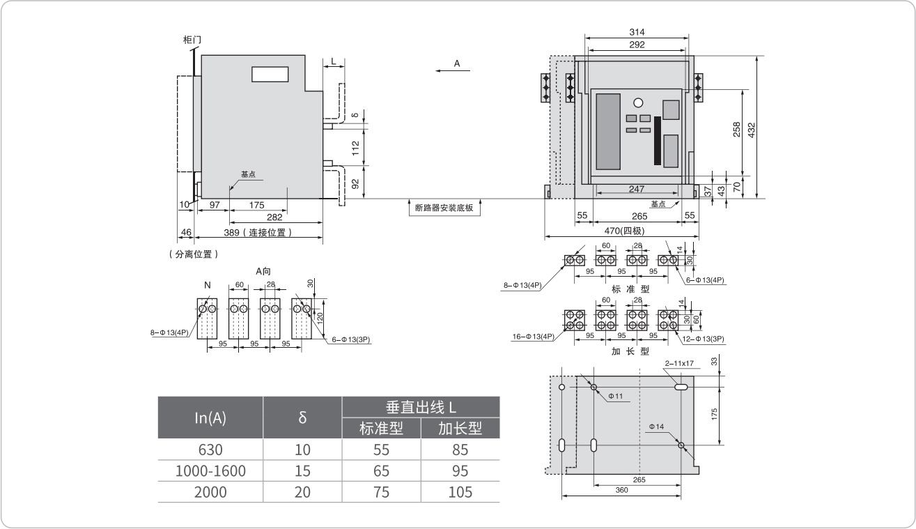 ?◇ CZW1-2000 外形及安裝尺寸圖(抽屜式)