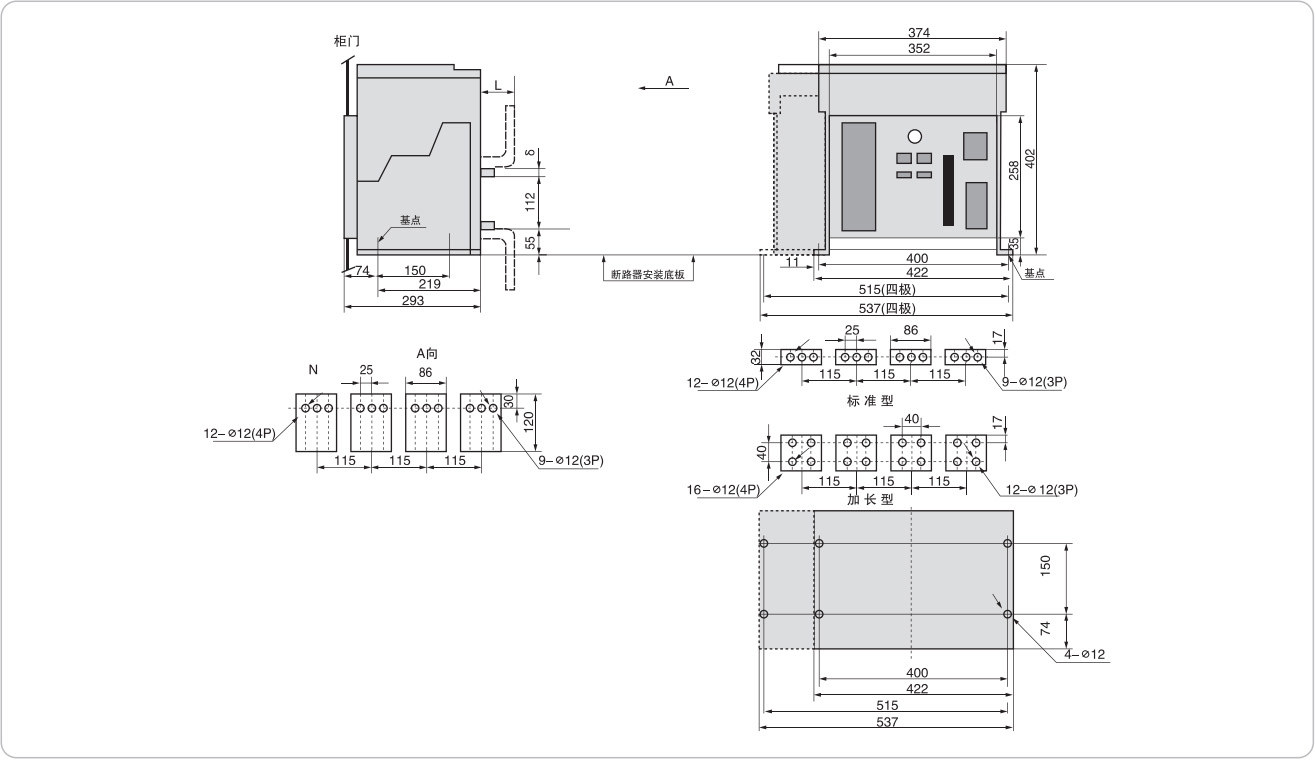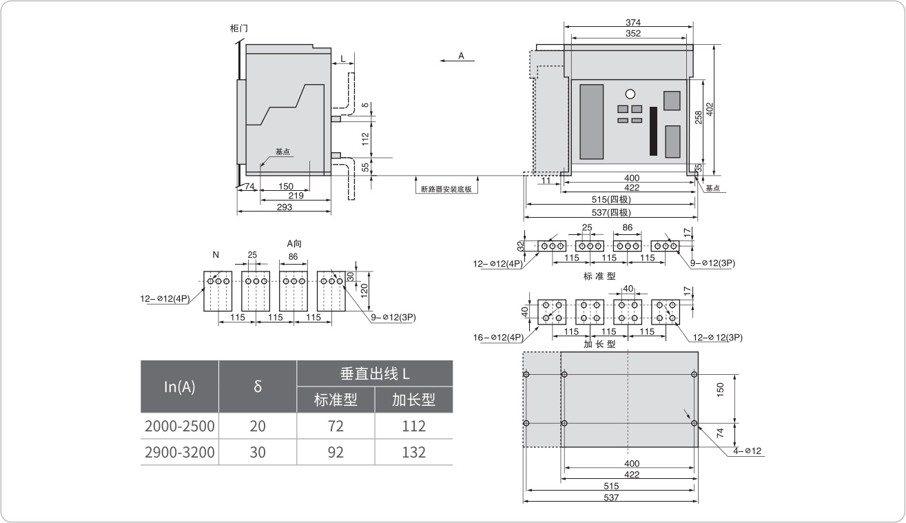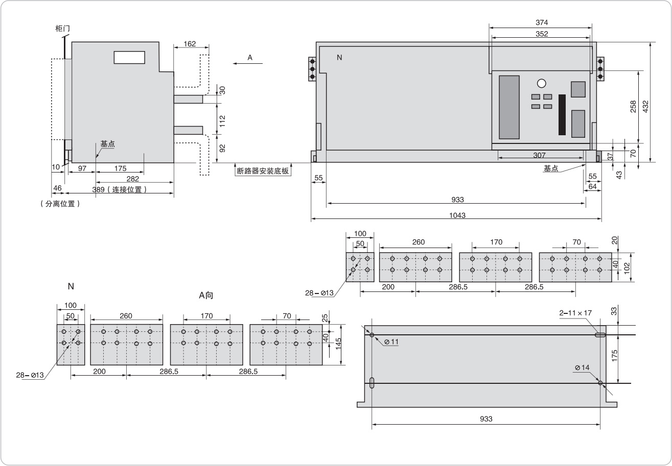 ◇ CZW1-4000/4 外形及安裝尺寸圖(抽屜式)