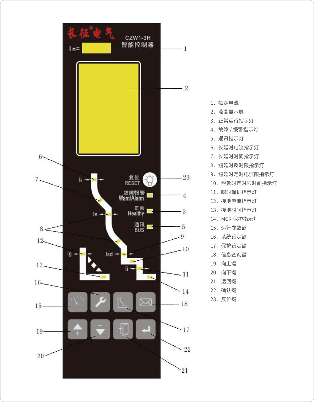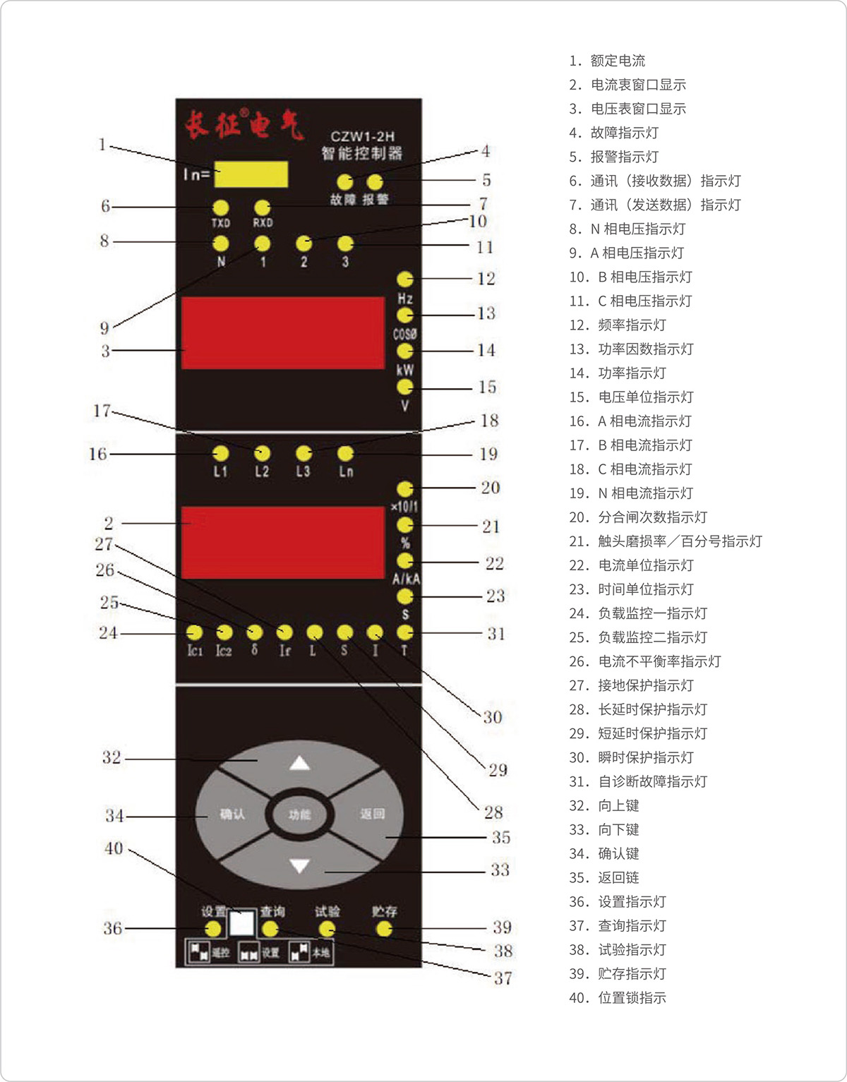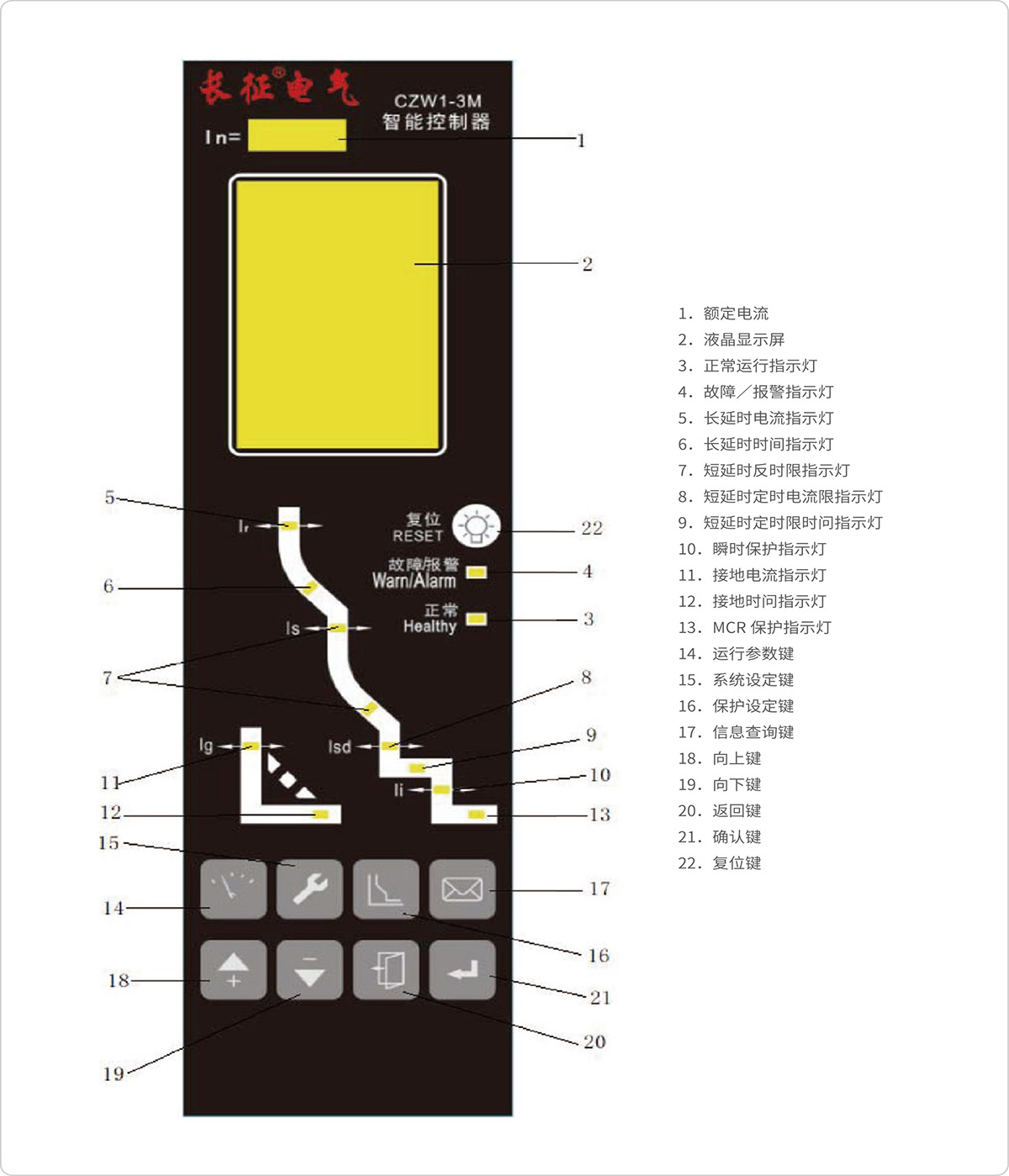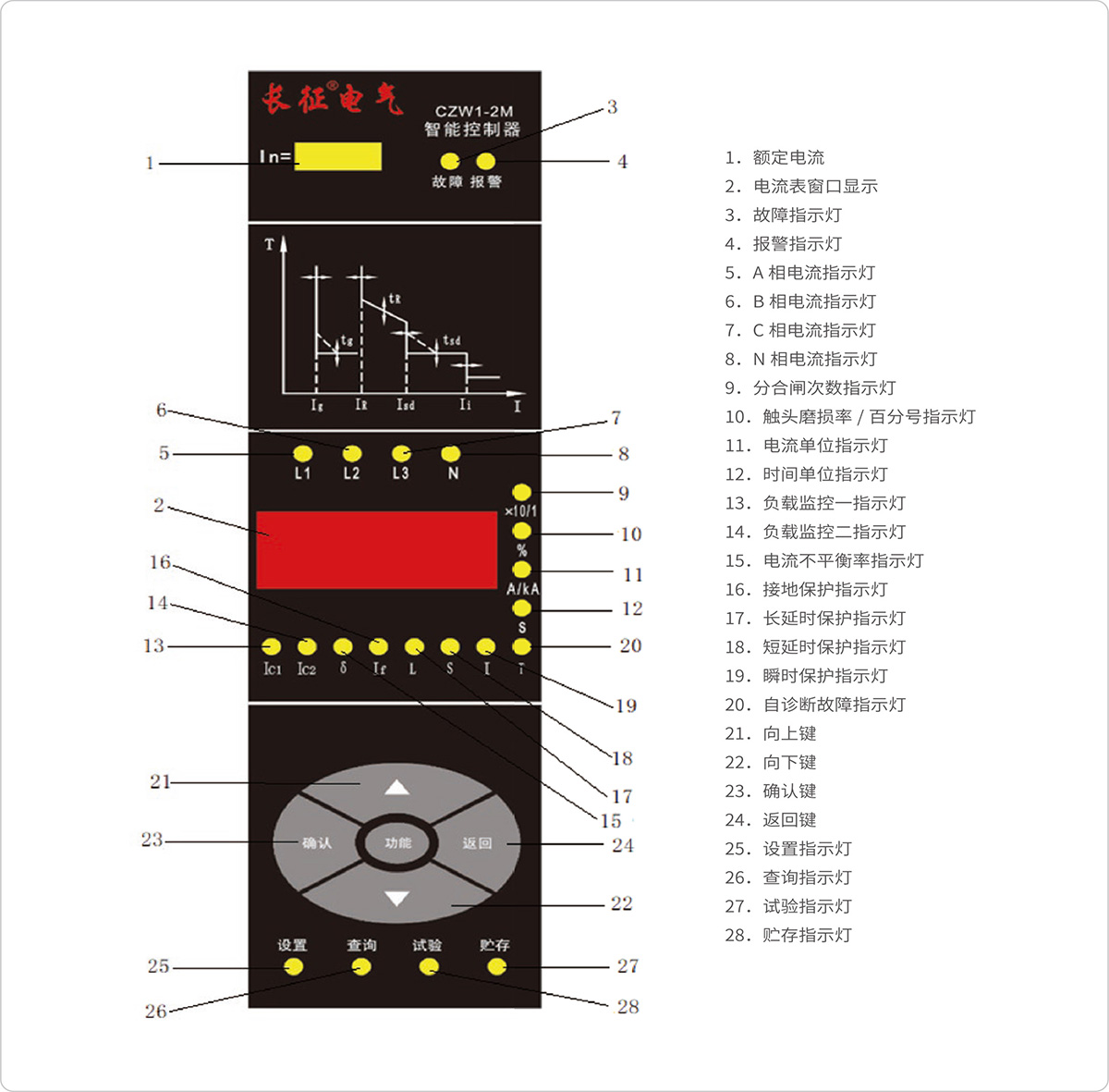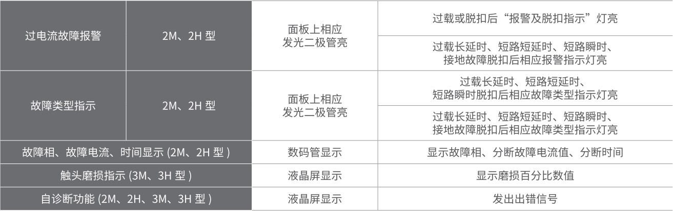 ?斷路器遇故障分斷后,智能控制器能顯示出故障類別、故障相序及故障電流值、分斷動作時間值。