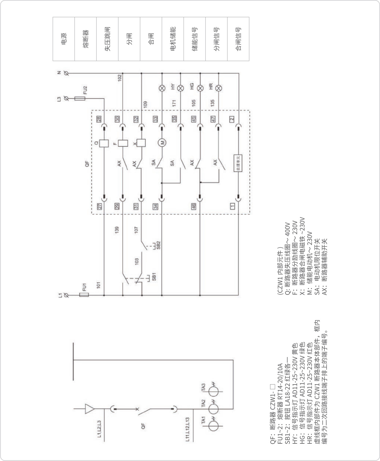 5、斷路器主電路及欠電壓脫扣器線圈、電源變壓器初級線圈的安裝類別為Ⅳ,其余輔助電路、控制電路安裝類別為Ⅲ;