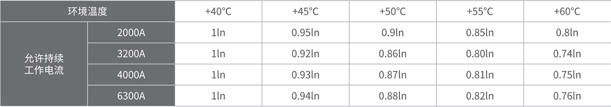 ?注:周圍空氣溫度與允許持續(xù)工作電流關(guān)系(在各種環(huán)境溫度下,實測斷路器進出線端溫度達到 110℃為基準)。