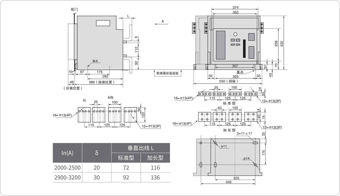 ?◇ CZW1-3200 外形及安裝尺寸圖(抽屜式)