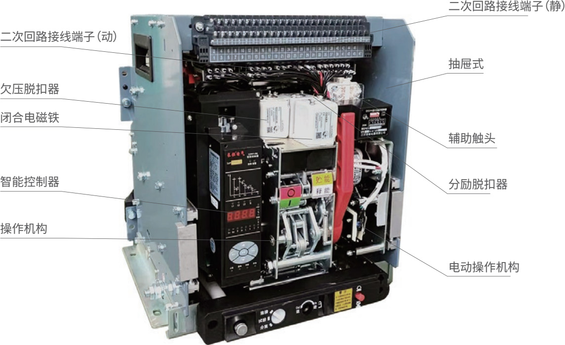 (a) 檢查欠電壓脫扣器、分勵脫扣器、合閘電磁鐵、電動貯能機構(gòu)及智能型控制器,外接輔助電源的額定電壓與所接電源電壓是否相符。然后接通二次回路(此時欠電壓脫扣器應(yīng)吸合)。