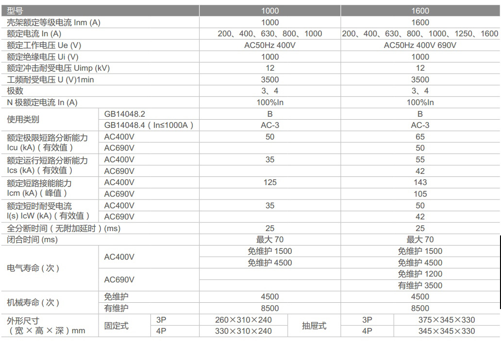 ● 斷路器主電路安裝類別為IV,其余輔助電路和控制電路安裝類別為1II;